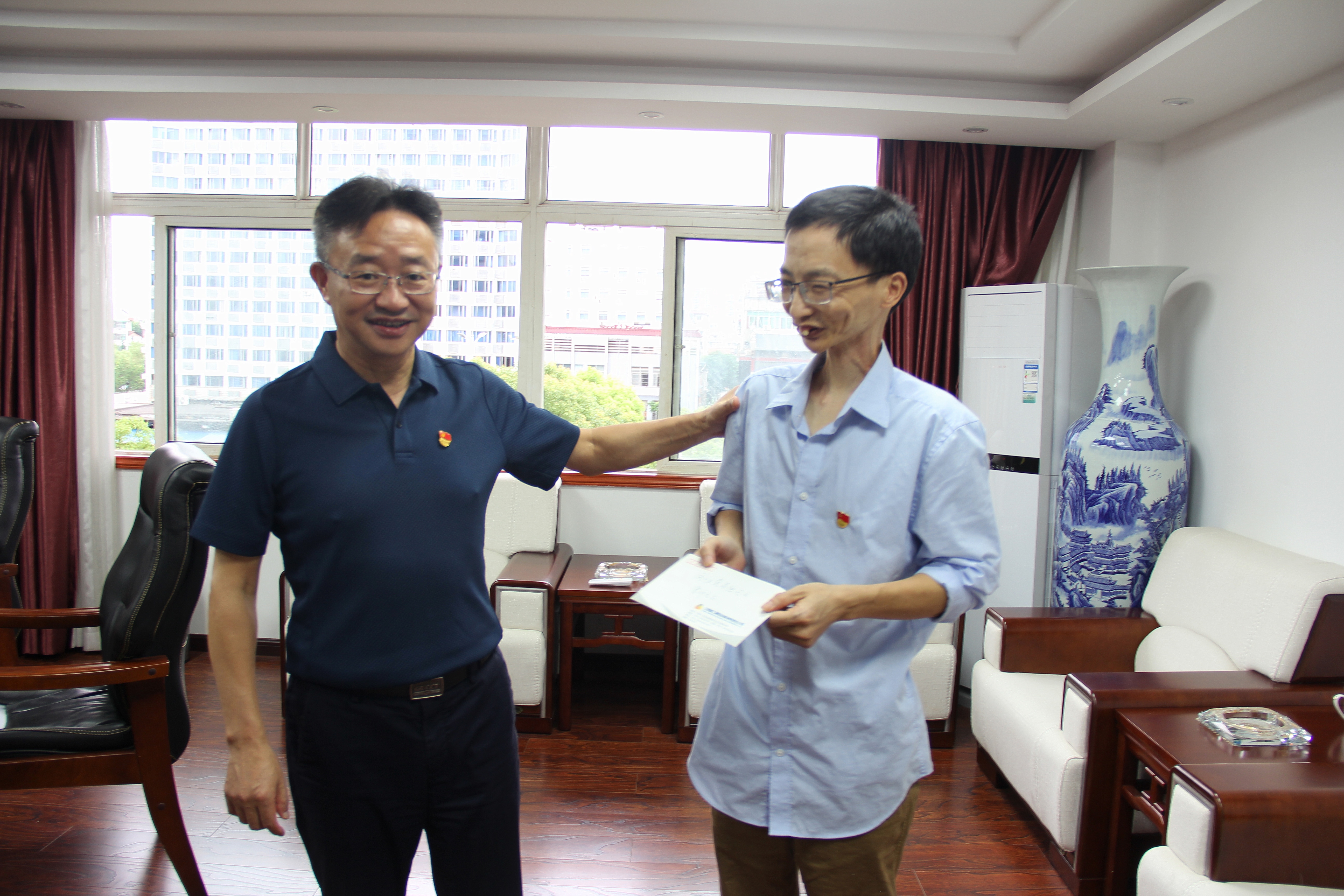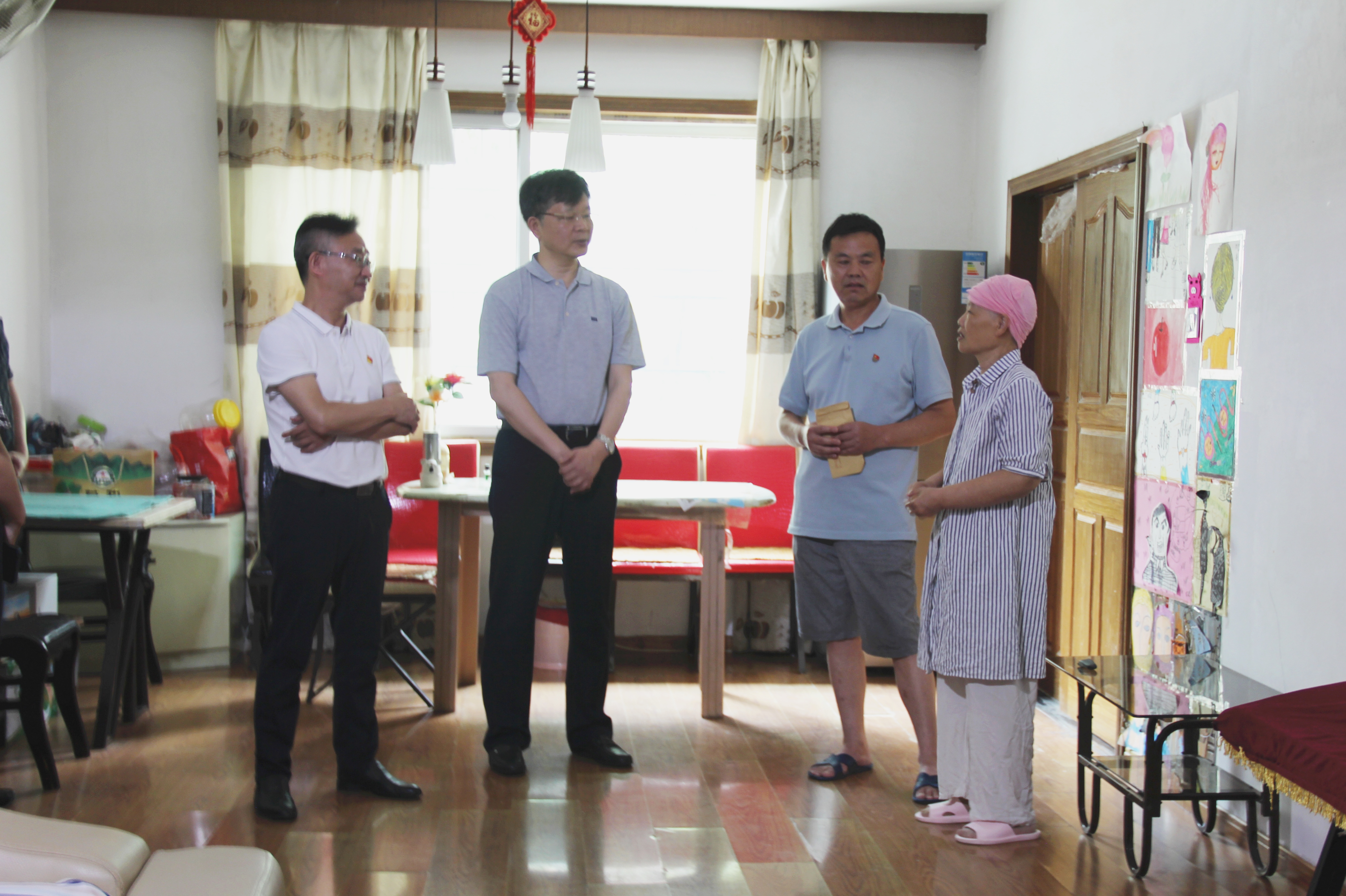 6月17日,省国资委党委委员、副主任江尚文在集团公司党委副书记、董事、工会主席缪圣纲、公司党委书记、董事长余恕保的陪同下来到公司困难党员万小勇的家中,江尚文详细了解其家属的病情,并鼓励她保持好的心态,早日战胜病魔。