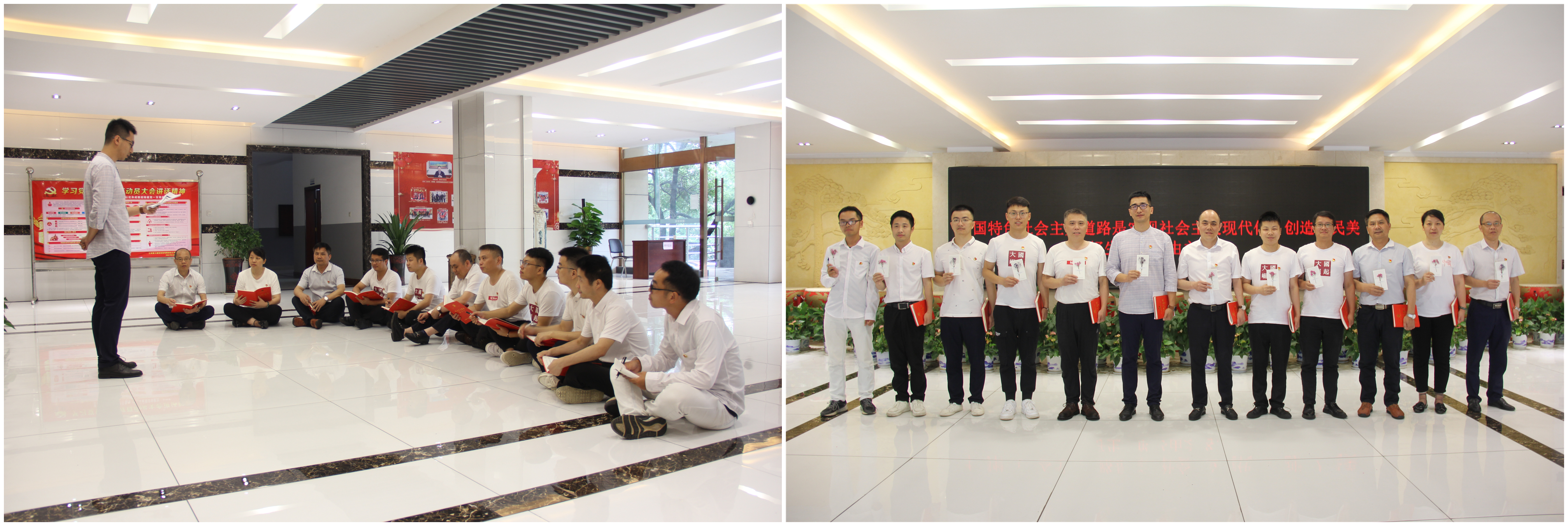 “我志愿加入中国共产党,拥护党的纲领,遵守党的章程,履行党员义务......”面对鲜红的党旗,党员们举起右拳,在公司党委书记、董事长余恕保的带领下大家庄严宣誓。一句句铿锵有力的誓言响彻大厅,直击人心,提振士气,表达了对党的忠诚、为共产主义事业奋斗终身的决心。