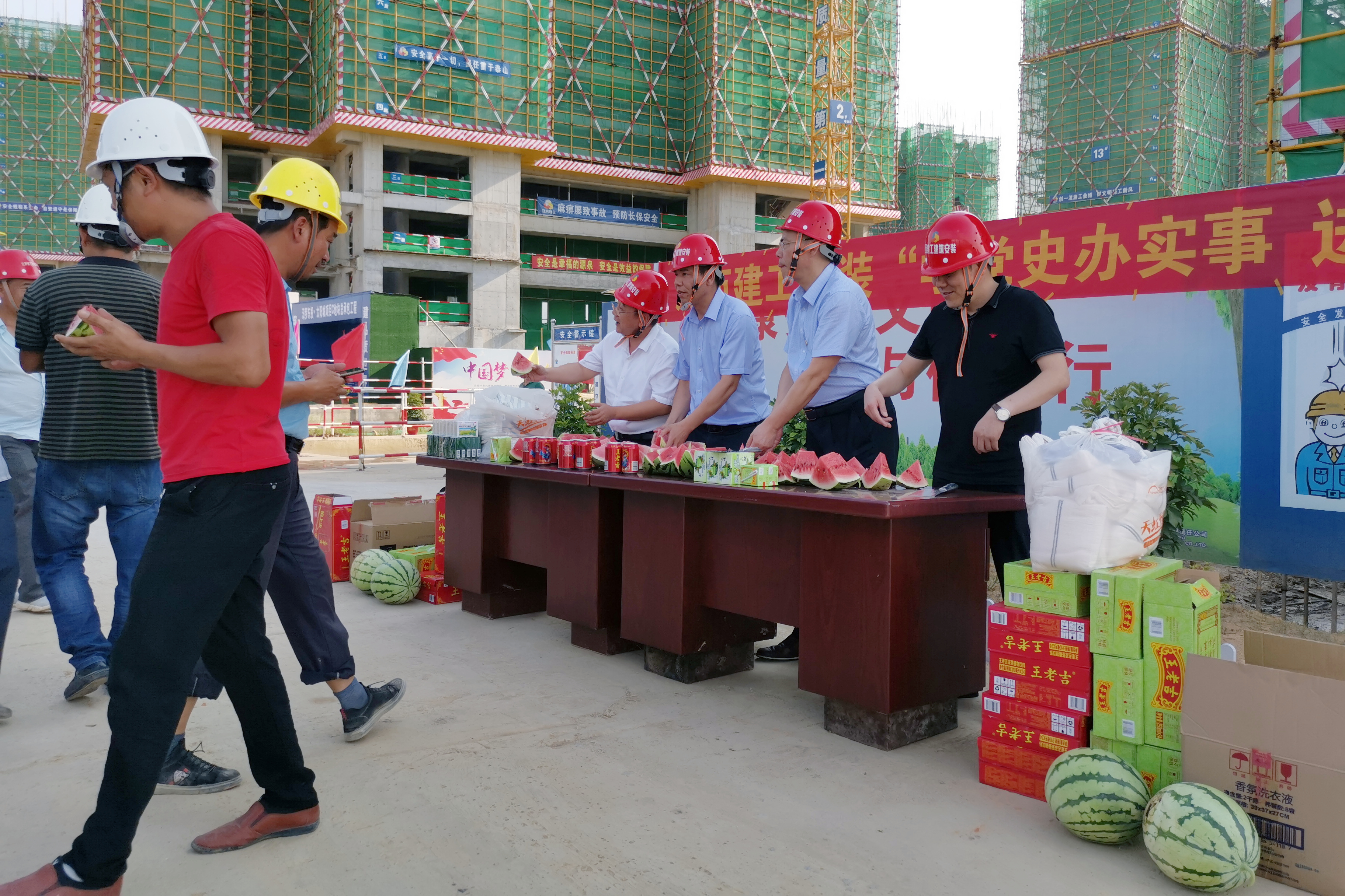 “情系一线,夏送清凉”,715日,集团公司工程管理部部长曾军、安全监督管理部部长宋根长,公司党委副书记、总经理吴朝荣,副总经理、总工程师黄久林一行来到公司汨罗东投太阳城项目开展集团公司二季度检查工作暨“夏送清凉”活动。