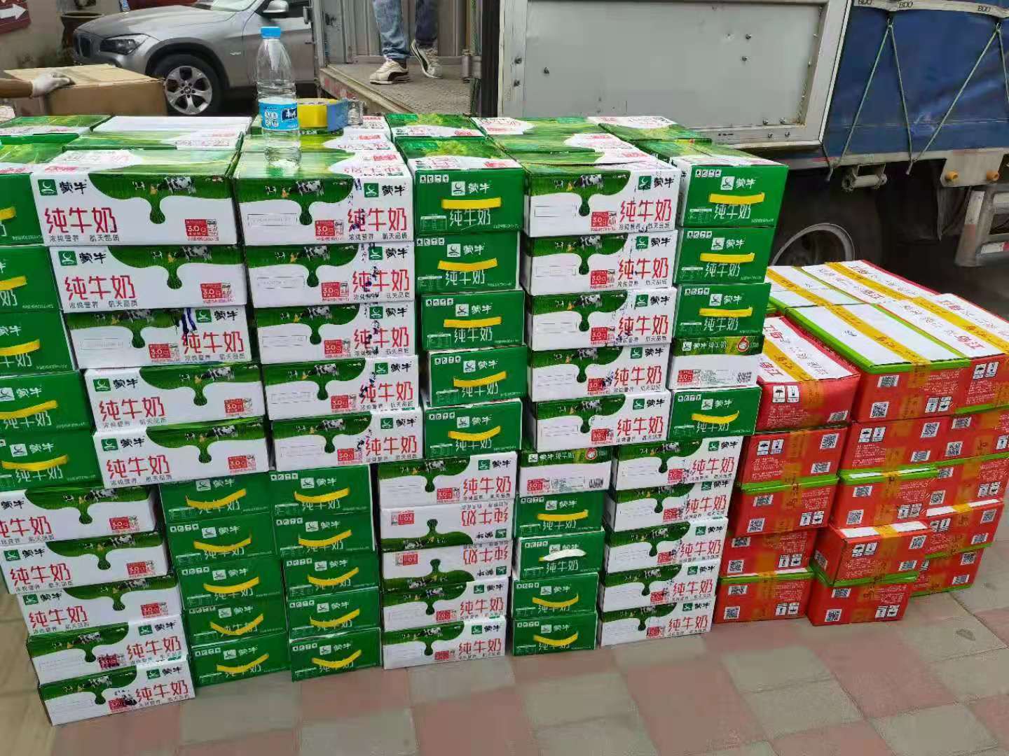 “报告!1900箱矿泉水,100箱牛奶,100箱面包!500件救生衣,200件消毒液!已全部抵达河南新乡!”